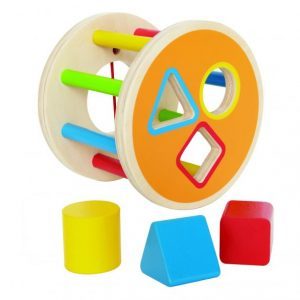 Dobd a lyukakba szín és forma szerint a kockákat, majd görgesd magad előtt a hengert!A játékot 12 hónapos kor felett ajánljuk! 4 db-os készlet. 14x14x11,3 cm, anyaga: Fa