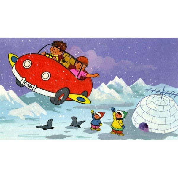 Peti egy csodaautóval álmodik – eljut a sivatagba, az őserdőbe, az eszkimók földjére. Kalandos útján kutyája, Füles is elkíséri.