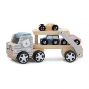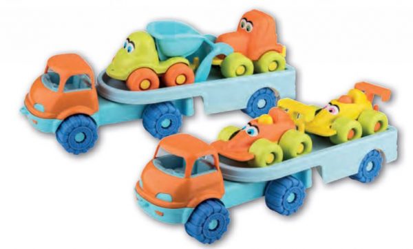 Autószállító járművekkel már biztosan találkoztál. Tudod, azok viszik a kész autókat a gyárból a boltba. A te műanyag autószállítód jó nagy, a hossza fél méter. A platójára kapsz 2 kisautót is, azok csodásan elférnek. A szállító járgányod stabil haladását 6 nagy kerék biztosítja, nem fog feldőlni a kanyarban sem.