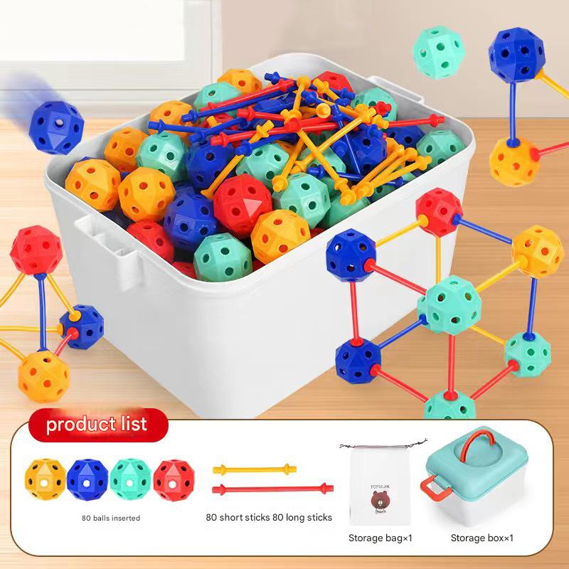 – Csoportmunka: Kérjük meg a gyerekeket, hogy csapatban dolgozzanak, osszák meg egymás között a feladatokat (pl. te fogod a rudakat, én az összekötő gömböket).