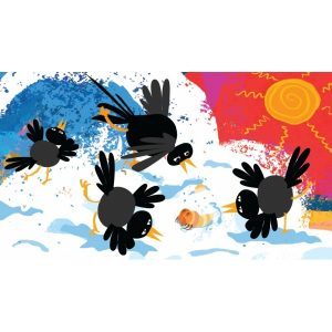 Mese a feketerigó és a hófolt barátságáról, na meg egy szép, piros vödörről. Korosztály: 2 év