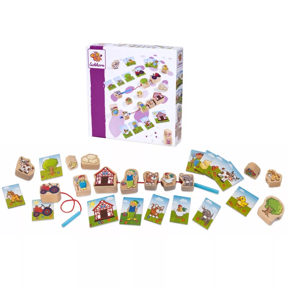 Eichhorn Fűzős készségfejlesztő fajáték 13 db-os (farmos)-ÚJ