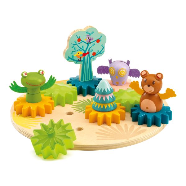 Ez a játék különleges lehetőséget ad arra, hogy a gyermekek megtapasztalják hogyan lendül mozgásba minden, ha egy fogaskerék is forogni kezd. A fák, a béka és a maci mindjárt közös táncot jár, amint a gyermek azt akarja!