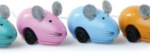 Élénk színű, tömör fából készült lendkerekes kisegér. Méret (hossz): 7cm Korosztály: 3+ év