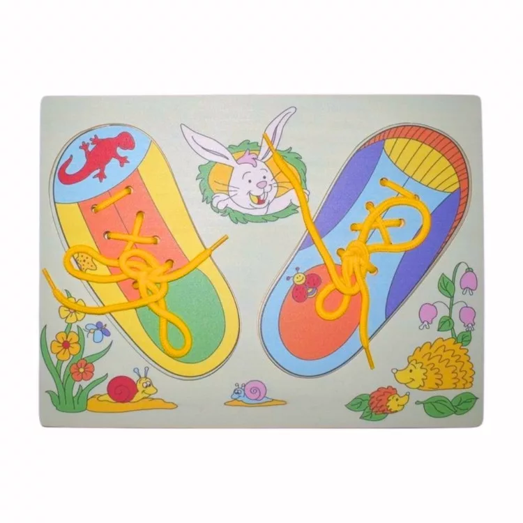 Fűzős cipő-puzzle-készségfejlesztő fajáték-Fakopáncs-ÚJ
