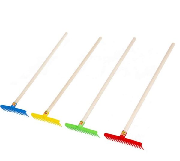 A homokozás a gyerekek egyik kedvenc elfoglaltsága, mely rengeteg előnnyel rendelkezik. Kint lehetnek a szabadban, együtt a barátaikkal, társaikkal. A különböző formájú homokozókkal készített figurák a szerepjáték, mesélés kellékei lehetnek. A homokozás során fejlődik a gyerek kreativitása és kézügyessége. A homokozás bizonyos mértékű testmozgással is együtt jár. Az udvart és a homokozót minden évszakban rendben kell tartani! Ebben segít ez az erős, élénk színű műanyagból készült gereblye fa nyéllel, melynek teljes hossza 67 cm.