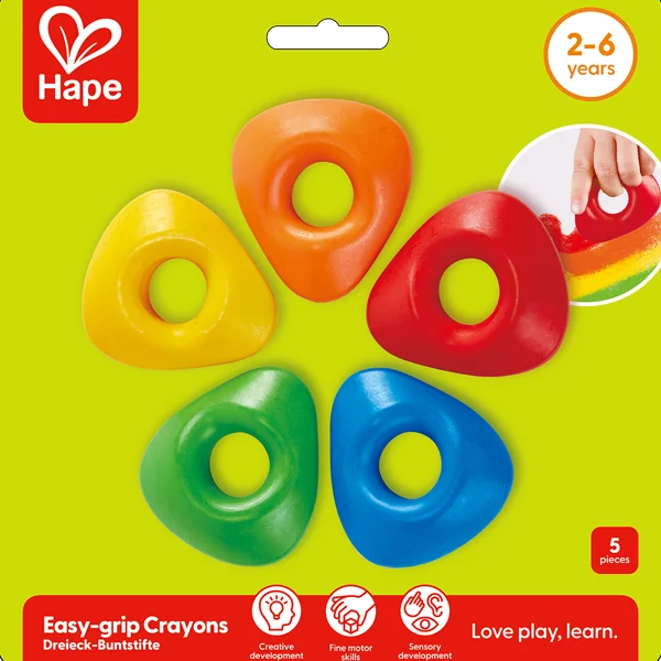 A HAPE Bébi zsírkréta szettje a legkisebbek igényeinek megfelelően lett kialakítva, így minden egyes darabja gyermekbarát anyagokból készült, háromszög alakjának köszönhetően jól illeszkedik a kis kezekbe is, illetve színe textilekből könnyedén kimosható mosógép segítségével. A HAPE ennél a termékénél is ügyelt a legmagasabb minőségre, ezért minden kréta magasan pigmentált, ami lehetővé teszi, hogy a kis művészek igazán színes és káprázatos műveket készíthessenek. A kréták kiválóan alkalmasak bölcsődei és óvodai csoportok számára, de otthoni használatra is ajánlott. 24 hónapos korú gyermekek használatára CE minősítéssel ellátva!