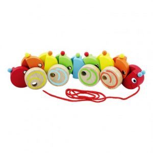 Miközben húzza a gyerkőc a kukacot , mozog az egész teste! Nagyon vidám játék azoknak a kicsiknek akik már járnak! Ajánlott korosztály: 1-4 éves korig Alapanyag: fa Méret: 32,5 x 6,5 x 7 cm