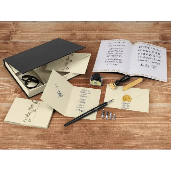 Az utóbbi időben ismét hódító útjára indult a kalligráfia, azaz a klasszikus szép kézírás művészete. Miközben a mindennapi életben egyre kevesebbet írunk kézzel, ez a hagyományos írásmód mégis reneszánszát éli. A kreatív téma iránt fogékony ember számára ez egy újabb művészeti ág, amibe könnyű beleszeretni, és hozzá most ezzel az exkluzív minőségű csomaggal komplett készletet szerezhet be!