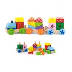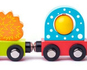 Sokszínű fa daru vonat tartalma egy mozdony, forgó daru és 5 blokk különböző mágneses alakú. A gyerek jól érezheti magát a blokkok be és kirakásával a daru segítségével, miközben megtanulja az alakzatok és a színek kombinációját. A jobb biztonság érdekében szegecselt kerekek...