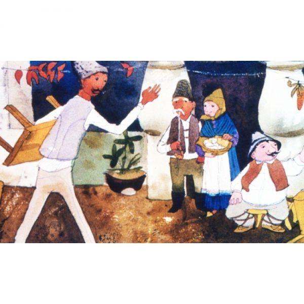 “Volt egyszer egy szegényember s három, folyton éhes legényfia. Olyan étvágyúak, hogy mindig csak ettek volna. Szegény apjuk kenyérrel is alig győzte őket…”
