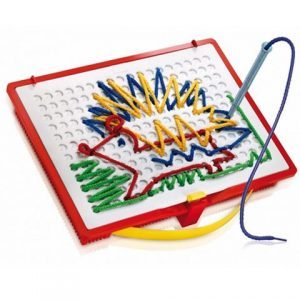 Kiemelten ajánljuk: minden diszgráfiával küzdő gyermeknek, finommotorikai fejlesztéshez, az íráskép javításához. Kreatív fantázia kialakulásához. Nagyoknak is! A játék lényege, hogy egy kis műanyag csőbe bele kell fűzni egy színes madzagot. Majd a masszív műanyag táblán található lyukakba belenyomni, s vinni...