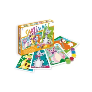 Készíts el 4 kis képet különféle színárnyalatú homokkal! A Sablimage kisgyermekeknek tervezett játék, amellyel egész egyszerűen szép, akár a szobájuk falára is kiakasztható képet alkothatnak, anélkül, hogy bepiszkítanák magukat. A Sablimage játékos és egyben művészi tevékenység, ideális a kreativitás, a...
