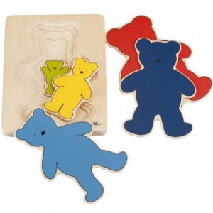 5 db elem. 17x13 cm-es tábla, anyaga: fa 5 különböző méretű, színű mackó. Ajánlott: 2 éves kortól