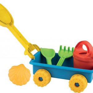 A húzós kocsival kényelmesen viheted a homokozós játékaidat a játszótérre vagy a vízpartra. Rossz idő esetén akár a lakásban is használhatod építőckák, játékok szállítására. A játék szett tartalma   1 db húzós kocsi 1 db locsolókanna 1 db homokozó forma...