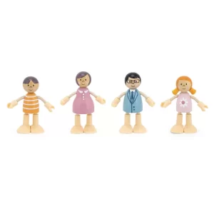 4 tagból álló színes, fa babacsalád. A szerepjátékok segítségével fejlődik a képzelőerő, a nyelvi- és kapcsolatteremtő képesség, valamint oldja a feszültséget. Felnőtt bábu mérete: 4,5 x 2,3 x 7,5 cm Gyerek bábu mérete: 4 x 2 x 7 cm
