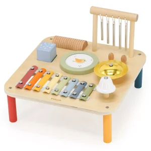 Pasztell színvilágával és faanyag használatával ez a készségfejlesztő játék nemcsak esztétikailag vonzó, de rendkívül tartós is, így hosszú távon szolgálhatja a családokat. Az asztal többféle játékot is kínál, köztük golyóvezetőt, formakeresőt, valamint különböző hangszereket, mint metalofon és cintányér, ami lehetőséget...