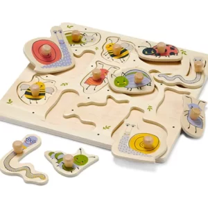 A legkisebbek szórakoztatására szolgáló kirakós játék 12 rovar mintázatú puzzle darab A fogást megkönnyítő kis fogantyúkkal Fejlesztheti a koordinációt és a kézügyességet A formák felismerésére ösztönöz FSC® tanúsítvánnyal rendelkező fából Ez a fogantyús fa puzzle védi a környezetet. Káros anyagokra...