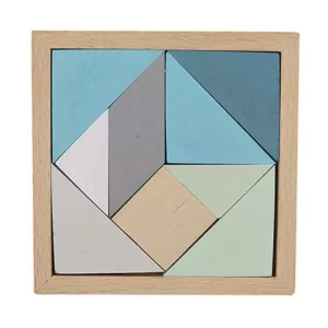 Fából készült Tangram és tetris építőjáték (kék, középen natúr kocka). Remek logikai és fejlesztő játék nemcsak gyermekeknek. A játék lényege, hogy az elemeket visszahelyezzük a fa keretbe, anélkül, hogy üres hely maradjon. A játék segítségével fejlődik a gyermek térlátása és...