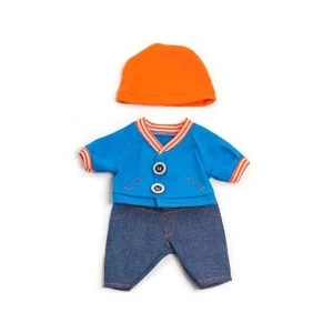Babaruha – farmernadrág, kabát, sapka 21 cm-es babához, MINILAND,-szerepjáték