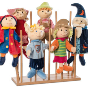 Masszív fa állvány, ujjbábok tárolására kiválóan alkalmas.